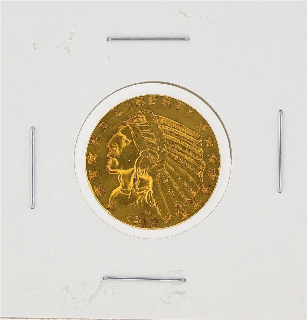 One 1912 $5 XF Indian Head Half Eagle Gold Coin.