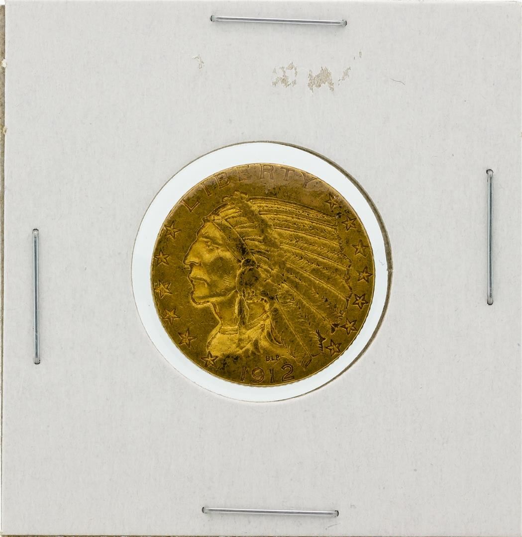 One 1912 $5 XF Indian Head Half Eagle Gold Coin.