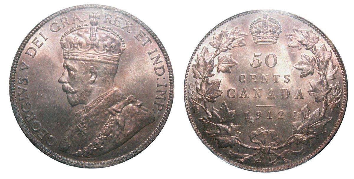 1912 50¢ ICCS MS65. ICCS Top 3. Very light purple tone with underlying lustre.
