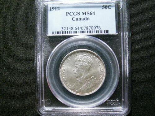 1912 50¢ PCGS MS64. An absolute near Gem example. Flashy white in colour with gem fields and tremendous lustre. An absloute must see
