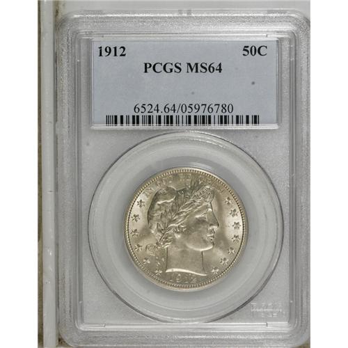 <B>1912 50C MS64 PCGS.</B></I> A well struck piece with pleasing and distinctly original luster. The devices are clean for the grade, though an abrasion is noted in the right obverse field. Population: 70 in 64, 19 finer (1/07).<BR><BR><b>Shipping:</b> Coins & Currency (<a target="_blank" href="http://www.heritageauctions.com/common/shipping.php">view shipping information</a>)
