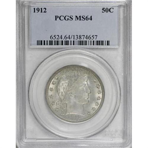 <B>1912 50C MS64 PCGS.</B></I> Uniformly satiny and devoid of individually mentionable marks. The surfaces are toned an even blend of green, gold, and silver with just a bit more golden color on the reverse. A nice, bold strike defines the details.<BR><BR><B>Coin Engraver:</B> Charles E. Barber<BR><BR><b>Shipping:</b> Coins & Currency (<a target="_blank" href="http://www.heritageauctions.com/common/shipping.php">view shipping information</a>)