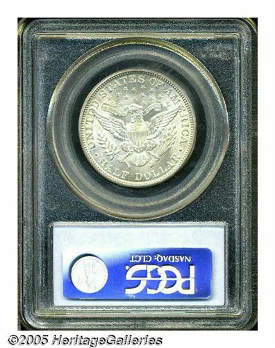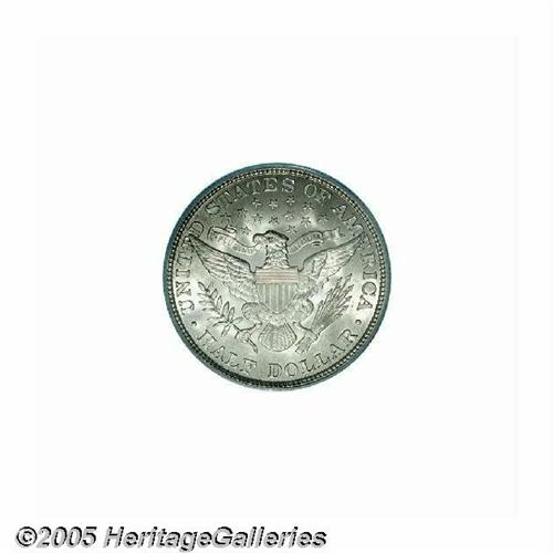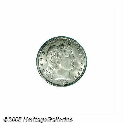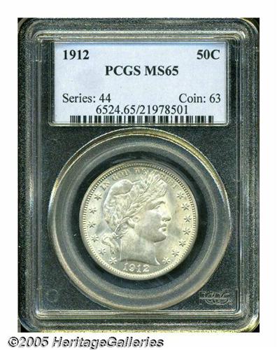 <B>1912<50C> MS65 PCGS.</B></I> A popular, late-date Philadelphia issue, the 1912 has a mintage of 1.55 million pieces but Gems are surprisingly scarce. Only 10 other pieces have been so graded by PCGS with two finer, while NGC has graded seven in MS65 with none finer (5/05). This is an uncommonly lustrous coin that has thick, frosted surfaces that show just the slightest hint of color. Sharply struck also.
