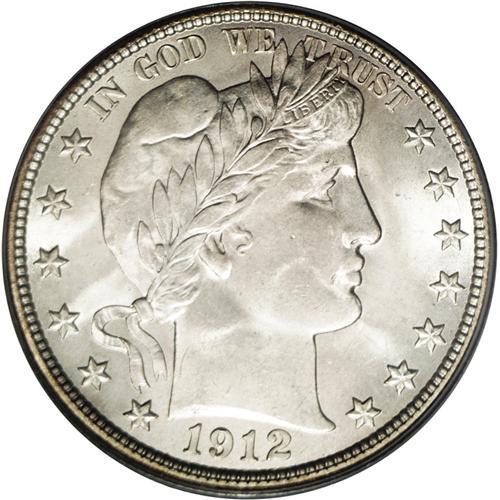 <B>1912 50C MS65 PCGS.</B></I> A satiny white coin with just a hint of gold starting to form over the devices. Well struck by the dies, with strong definition on the eagle's claws and wings. Examination with a loupe with find a small nick above Liberty's brow and another near the center of the shield. Decidedly scarce this nice and quite rare finer. Population: 12 in 65, 2 finer (12/05).