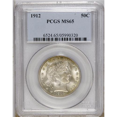 <B>1912 50C MS65 PCGS.</B></I> This Gem half dollar exudes fantastic, vibrant luster through a thin veneer of barely discernible ice-blue, beige, and lavender patination. The design elements are well brought up, with just a hint of the usual softness in the upper right corner of the shield and on the arrow feathers. A few minute marks on the cheek and in the shield prevent the assignment of a higher grade. Population: 15 in 65, 2 finer (11/06).<BR><BR><b>Shipping:</b> Coin/Currency (<a target="_blank" href="http://www.heritageauctions.com/common/shipping.php">view shipping information</a>)