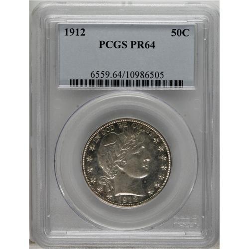<B>1912 50C PR64 PCGS.</B></I> 700 proof half dollars were struck in 1912. Splashes of dusky gray, lavender, and cobalt-blue patination visit bright proof surfaces. Reflective fields slightly offset lightly frosted motifs when the coin is observed from a low angle. Well struck, save for minor softness in the upper right corner of the shield.<BR><BR><b>Shipping:</b> Coins & Currency (<a target="_blank" href="http://www.heritageauctions.com/common/shipping.php">view shipping information</a>)