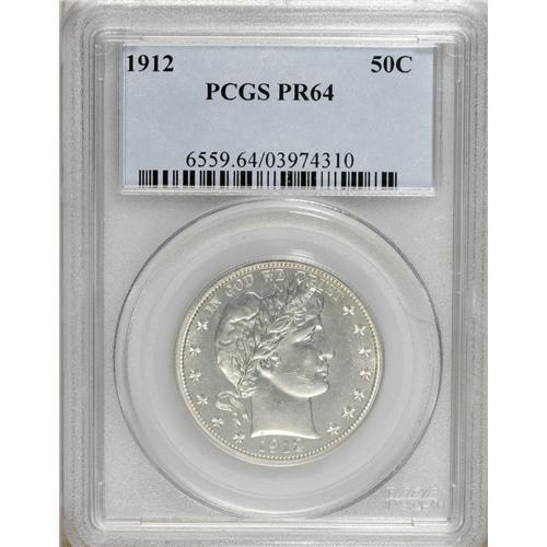 <B>1912 50C PR64 PCGS.</B></I> This nearly untoned near-Gem has moderate frost throughout the devices, although the contrast is just shy of meeting a Cameo designation. When a loupe is used, a few unobtrusive slide marks emerge on the cheek. Population: 46 in 64, 33 finer (2/07).<BR><BR><b>Shipping:</b> Coins & Currency (<a target="_blank" href="http://www.heritageauctions.com/common/shipping.php">view shipping information</a>)