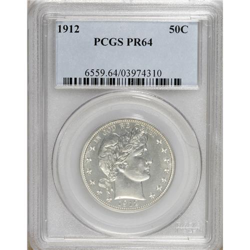 <B>1912 50C PR64 PCGS.</B></I> This nearly untoned near-Gem has moderate frost throughout the devices, although the contrast is just shy of meeting a Cameo designation. When a loupe is used, a few unobtrusive slide marks emerge on the cheek. Population: 47 in 64, 33 finer (4/07).<BR><BR><b>Shipping:</b> Coins & Currency (<a target="_blank" href="http://www.heritageauctions.com/common/shipping.php">view shipping information</a>)