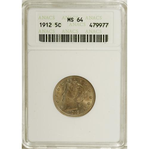 1912 5C MS64 ANACS. NGC Census: (319/101). PCGS Po