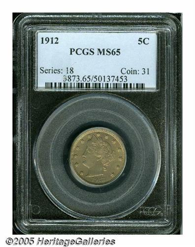 1912 5C MS65 PCGS. A layer of warm, medium-intens