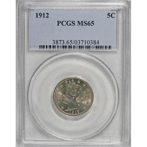 <B>1912 5C MS65 PCGS.</B></I> PCGS Population (149/22). NGC Census: (93/9). Mintage: 26,236,714. Numismedia Wsl. Price for NGC/PCGS coin in MS65: $560. (#3873)<BR><BR><B>Coin Engraver:</B> Charles E. Barber<BR><BR><b>Shipping:</b> Coins & Currency (<a target="_blank" href="http://www.heritageauctions.com/common/shipping.php">view shipping information</a>)