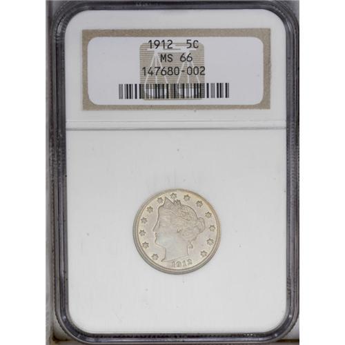 <B>1912<5C> MS66 NGC.</B></I> A thin veneer of yellow-orange covers both sides, but more prominently on the reverse, of this beautiful Premium Gem coin. The strike is bold, if not absolutely full. The grade is limited by a few trivial abrasions just before Liberty's face and on her neck. Among the highest graded at either service. Census: 9 in 66, 0 finer (4/06).