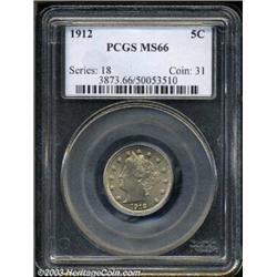 <TR><TD width="100%"><TABLE cellSpacing=1 cellPadding=3 width="100%" border=0><TBODY><TR><TD width="100%" bgColor=#79735c><FONT face=arial color=#ffffff size=3><B>Description</B> </FONT></TD></TR><TR><TD width="100%" bgColor=#ffffff><FONT face=arial size=2><B>1912 5C MS66 PCGS.</B></I> Bright luster and clean fields, a Gem representative of this final year Liberty nickel. Some very light golden color is seen on each side. </FONT></TD></TR></TBODY></TABLE></TD></TR></TBODY></TABLE><BR><A name=PricesRealized></A><TABLE cellSpacing=0 cellPadding=0 width="100%" bgColor=#000000 border=0><TBODY><TR><TD width="100%"><TABLE cellSpacing=1 cellPadding=3 width="100%" border=0><TBODY><TR><TD width="100%" bgColor=#79735c><A name=PR><FONT face=arial color=#ffffff size=3><B>Previous Prices from Heritage Auctions</B> </FONT></A></TD></TR><TR><TD bgColor=#f6f6ed><TABLE cellSpacing=0 cellPadding=0 width="100%" border=1><TBODY><TR><TD align=middle width="33%"><B>Date</B></TD><TD align=middle width="33%"><B>Service</B></TD><TD align=middle width="33%"><B>Price</B></TD></TR><TR bgColor=whitesmoke><TD width="33%"><B>03/01/2003</B></TD><TD width="33%">NGC</TD><TD width="33%">$891.25</TD></TR></TBODY></TABLE></TD></TR><TR><TD bgColor=#ffffff><FONT face=arial size=1 ?>PLEASE NOTE: All prices realized reflect the final hammer price PLUS the buyer's premium in auctions that charge a buyer's premium. Each item has a notation at the top of the listing indicating whether that lot included a buyer's premium. Example: A item that sells with a final hammer price of $100 and a 20% buyer's premium will display with a price realized of $120. All information listed is intended to be as accurate as possible, but errors are possible. Please use this guide carefully and inform us of any inaccuracies. </FONT></TD></TR></TBODY></TABLE></TD></TR></TBODY></TABLE><BR><TABLE cellSpacing=0 cellPadding=0 width="100%" bgColor=#000000 border=0><TBODY><TR><TD width="100%"><TABLE cellSpacing=1 cellPadding=3 width="100%" border=0><TBODY><TR><TD width="100%" bgColor=#79735c colSpan=6><FONT face=arial color=#ffffff size=3><B>Price Guide*</B> </FONT></TD></TR><TR bgColor=#f6f6ed><TD align=middle><B>Grade</B> </TD><TD align=middle><B>Coin World<BR>(Trends)</B> </TD><TD align=middle><B>Numismedia<BR>Retail</B> </TD><TD align=middle><B>Numismedia<BR>Wholesale</B> </TD><TD align=middle><B>Coin<BR>Universe</B> </TD><TD align=middle><B>Heritage<BR>Value Index</B> </TD></TR><TR bgColor=#ffffff><TD align=middle>65</TD><TD align=right>$535.00</TD><TD align=right>$475.00</TD><TD align=right>$380.00</TD><TD align=right>$750.00</TD><TD align=right>$416.63</TD></TR><TR style="FONT-WEIGHT: bold" bgColor=#cccfdd><TD align=middle>66</TD><TD align=right>$1,200.00</TD><TD align=right>---</TD><TD align=right>$850.00</TD><TD align=right>---</TD><TD align=right>$865.63</TD></TR><TR bgColor=#ffffff><TD align=middle>67</TD><TD align=right>---</TD><TD align=right>---</TD><TD align=right>---</TD><TD align=right>---</TD><TD align=right>---</TD></TR><TR bgColor=#ffffff><TD colSpan=6><FONT size=1>*All information listed is intended to be as accurate as possible, but errors are possible. No item may be returned or refused based on this information which is provided as a service to our customers. You should contact each pricing source directly to determine the accuracy of this information. </FONT></TD></TR></TBODY></TABLE></TD></TR></TBODY></TABLE><BR><TABLE cellSpacing=0 cellPadding=0 width="100%" bgColor=#000000 border=0><TBODY><TR><TD width="100%"><TABLE cellSpacing=1 cellPadding=3 width="100%" border=0><TBODY><TR><TD width="100%" bgColor=#79735c><FONT face=arial color=#ffffff size=3><B>Population Guide</B> </FONT></TD></TR><TR bgColor=#ffffff><TD align=middle><!-- Begin Output of Population Grid--><TABLE cellSpacing=0 cellPadding=0 width="100%" border=0><TBODY><TR><TD vAlign=center><TABLE cellSpacing=0 width="100%" border=1 cellsadding="3"><TBODY><TR><TD vAlign=center><TABLE cellSpacing=0 cellPadding=3 width="100%" border=1><TBODY><TR><TD vAlign=center align=middle bgColor=#f0f1e8 colSpan=2 <CENTER><FONT face=Arial size=2><B>PCGS Pop </B></FONT><CENTER></CENTER></TD><TD vAlign=center align=middle bgColor=#f0f1e8 colSpan=2><CENTER><FONT face=Arial size=2><B>NGC Pop</B></CENTER></FONT></TD></TR><TR><TD vAlign=center><FONT face=Arial size=2>(66)</FONT> </TD><TD vAlign=center align=right><FONT face=Arial size=2>4</FONT> </TD><TD vAlign=center><FONT face=Arial size=2>(66)</FONT> </TD><TD vAlign=center align=right><FONT face=Arial size=2>8</FONT> </TD></TR><TR><TD vAlign=center><FONT face=Arial size=2>(>66)</FONT> </TD><TD vAlign=center align=right><FONT face=Arial size=2>0</FONT> </TD><TD vAlign=center><FONT face=Arial size=2>(>66)</FONT> </TD><TD vAlign=center align=right><FONT face=Arial size=2>0</FONT> </TD></TR></TBODY></TABLE></TD></TR></TBODY></TABLE></TD></TR></TBODY></TABLE><!-- End Output of Population Grid--></TD></TR></TBODY></TABLE></TD></TR></TBODY></TABLE><BR><TABLE cellSpacing=0 cellPadding=0 width="100%" bgColor=#000000 border=0><TBODY><TR> Important notice: We expect to be auctioning lots at the rate of 200-250 per hour. On occasion eBay live bid software cannot keep up with the pace of the auctions where 4-5 lots per minute can hammer down, so we recommend that you place a realistic absentee bid now as insurance to avoid disappointment. Also please note that all Heritage/CAA lots purchased through eBay Live carry a 20% Buyer's Premium. Please make sure you read the Terms and Conditions.