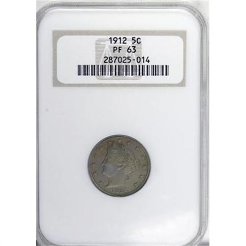 <B>1912 5C PR63 NGC.</B></I> NGC Census: (55/405). PCGS Population (92/307). Mintage: 2,145. Numismedia Wsl. Price for NGC/PCGS coin in PR63: $176. (#3910)<BR><BR><B>Coin Engraver:</B> Charles E. Barber<BR><BR><b>Shipping:</b> Coins & Currency (<a target="_blank" href="http://www.heritageauctions.com/common/shipping.php">view shipping information</a>)