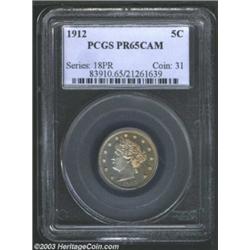 <TABLE cellSpacing=0 cellPadding=0 width="100%" bgColor=#000000 border=0><TBODY><TR><TD width="100%"><TABLE cellSpacing=1 cellPadding=3 width="100%" border=0><TBODY><TR><TD width="100%" bgColor=#79735c><FONT face=arial color=#ffffff size=3><B>Description</B> </FONT></TD></TR><TR><TD width="100%" bgColor=#ffffff><FONT face=arial size=2><B>1912 5C PR65 Cameo PCGS.</B></I> Sharply detailed with a pleasing mixture of lilac, olive, and amber toning on seemingly pristine surfaces, displaying cameo contrast which is rather scarce for this type. Population: 1 in 65, 2 finer (8/03). </FONT></TD></TR></TBODY></TABLE></TD></TR></TBODY></TABLE><BR><A name=PricesRealized></A><TABLE cellSpacing=0 cellPadding=0 width="100%" bgColor=#000000 border=0><TBODY><TR><TD width="100%"><TABLE cellSpacing=1 cellPadding=3 width="100%" border=0><TBODY><TR><TD width="100%" bgColor=#79735c><A name=PR><FONT face=arial color=#ffffff size=3><B>Previous Prices from Heritage Auctions</B> </FONT></A></TD></TR><TR><TD bgColor=#f6f6ed><TABLE cellSpacing=0 cellPadding=0 width="100%" border=1><TBODY><TR><TD align=middle width="33%"><B>Date</B></TD><TD align=middle width="33%"><B>Service</B></TD><TD align=middle width="33%"><B>Price</B></TD></TR><TR bgColor=whitesmoke><TD width="33%"><B>11/23/2002</B></TD><TD width="33%">PCGS</TD><TD width="33%">$2,990.00</TD></TR><TR bgColor=whitesmoke><TD width="33%"><B>05/03/2003</B></TD><TD width="33%">PCGS</TD><TD width="33%">$977.50</TD></TR></TBODY></TABLE></TD></TR><TR><TD bgColor=#ffffff><FONT face=arial size=1 ?>PLEASE NOTE: All prices realized reflect the final hammer price PLUS the buyer's premium in auctions that charge a buyer's premium. Each item has a notation at the top of the listing indicating whether that lot included a buyer's premium. Example: A item that sells with a final hammer price of $100 and a 20% buyer's premium will display with a price realized of $120. All information listed is intended to be as accurate as possible, but errors are possible. Please use this guide carefully and inform us of any inaccuracies. </FONT></TD></TR></TBODY></TABLE></TD></TR></TBODY></TABLE><BR><TABLE cellSpacing=0 cellPadding=0 width="100%" bgColor=#000000 border=0><TBODY><TR><TD width="100%"><TABLE cellSpacing=1 cellPadding=3 width="100%" border=0><TBODY><TR><TD width="100%" bgColor=#79735c colSpan=6><FONT face=arial color=#ffffff size=3><B>Price Guide*</B> </FONT></TD></TR><TR bgColor=#f6f6ed><TD align=middle><B>Grade</B> </TD><TD align=middle><B>Coin World<BR>(Trends)</B> </TD><TD align=middle><B>Numismedia<BR>Retail</B> </TD><TD align=middle><B>Numismedia<BR>Wholesale</B> </TD><TD align=middle><B>Coin<BR>Universe</B> </TD><TD align=middle><B>Heritage<BR>Value Index</B> </TD></TR><TR bgColor=#ffffff><TD align=middle>64</TD><TD align=right>---</TD><TD align=right>---</TD><TD align=right>---</TD><TD align=right>---</TD><TD align=right>$279.75</TD></TR><TR style="FONT-WEIGHT: bold" bgColor=#cccfdd><TD align=middle>65</TD><TD align=right>---</TD><TD align=right>---</TD><TD align=right>---</TD><TD align=right>$900.00</TD><TD align=right>$663.33</TD></TR><TR bgColor=#ffffff><TD align=middle>66</TD><TD align=right>---</TD><TD align=right>---</TD><TD align=right>---</TD><TD align=right>---</TD><TD align=right>---</TD></TR><TR bgColor=#ffffff><TD colSpan=6><FONT size=1>*All information listed is intended to be as accurate as possible, but errors are possible. No item may be returned or refused based on this information which is provided as a service to our customers. You should contact each pricing source directly to determine the accuracy of this information. </FONT></TD></TR></TBODY></TABLE></TD></TR></TBODY></TABLE><BR><TABLE cellSpacing=0 cellPadding=0 width="100%" bgColor=#000000 border=0><TBODY><TR><TD width="100%"><TABLE cellSpacing=1 cellPadding=3 width="100%" border=0><TBODY><TR><TD width="100%" bgColor=#79735c><FONT face=arial color=#ffffff size=3><B>Population Guide</B> </FONT></TD></TR><TR bgColor=#ffffff><TD align=middle><!-- Begin Output of Population Grid--><TABLE cellSpacing=0 cellPadding=0 width="100%" border=0><TBODY><TR><TD vAlign=center><TABLE cellSpacing=0 width="100%" border=1 cellsadding="3"><TBODY><TR><TD vAlign=center><TABLE cellSpacing=0 cellPadding=3 width="100%" border=1><TBODY><TR><TD vAlign=center align=middle bgColor=#f0f1e8 colSpan=2 <CENTER><FONT face=Arial size=2><B>PCGS Pop </B></FONT><CENTER></CENTER></TD><TD vAlign=center align=middle bgColor=#f0f1e8 colSpan=2><CENTER><FONT face=Arial size=2><B>NGC Pop</B></CENTER></FONT></TD></TR><TR><TD vAlign=center><FONT face=Arial size=2>(65)</FONT> </TD><TD vAlign=center align=right><FONT face=Arial size=2>1</FONT> </TD><TD vAlign=center><FONT face=Arial size=2>(65)</FONT> </TD><TD vAlign=center align=right><FONT face=Arial size=2>2</FONT> </TD></TR><TR><TD vAlign=center><FONT face=Arial size=2>(>65)</FONT> </TD><TD vAlign=center align=right><FONT face=Arial size=2>2</FONT> </TD><TD vAlign=center><FONT face=Arial size=2>(>65)</FONT> </TD><TD vAlign=center align=right><FONT face=Arial size=2>12</FONT> </TD></TR></TBODY></TABLE></TD></TR></TBODY></TABLE></TD></TR></TBODY></TABLE><!-- End Output of Population Grid--> Important notice: Heritage usually auctions material at the rate of 200-250 lots per hour. On some occasions eBay Live bid software or the Internet may not be able to keep up with the pace of the auction. We recommend placing a realistic absentee bid now as insurance to avoid disappointment. Occasionally the auctioneer may eliminate or reject an eBay Live bid, and the auctioneer may also reopen a lot after the close of the eBay live bidding (usually because we missed an audience bid), and may reject your bid even if it shows you as the winning bidder. By bidding via eBay Live, you agree that Heritage may award the lot to another bidder at its sole discretion under the circumstances described above or any other reasonable circumstances. Also please note that all Heritage lots purchased through eBay Live carr