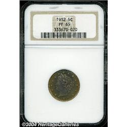 <B>1912<5C> PR65 NGC.</B></I> A melange of gold, yellow, and light green toning are nicely balanced over each side. Exquisitely struck, with no major contact marks. An exceptionally good looking coin. <BR><BR><B>Important notice:</B> Heritage usually auctions material at the rate of 200-250 lots per hour. On some occasions eBay Live bid software or the Internet may not be able to keep up with the pace of the auction. We recommend placing a realistic absentee bid now as insurance to avoid disappointment. Occasionally the auctioneer may eliminate or reject an eBay Live bid, and the auctioneer may also reopen a lot after the close of the eBay live bidding (usually because we missed an audience bid), and may reject your bid even if it shows you as the winning bidder. By bidding via eBay Live, you agree that Heritage may award the lot to another bidder at its sole discretion under the circumstances described above or any other reasonable circumstances. Since eBay bids are not shown to us until we open the lot on the floor, we treat those bids just like floor bids. In most cases the floor responds before the eBay bid is presented to us, due to Internet lag time, so for consistency we have made it a policy that floor bids are always considered first over tie eBay live bids. Also please note that all Heritage lots purchased through eBay Live carry a 20% Buyer's Premium. Please make sure you read the Terms and Conditions before you bid.