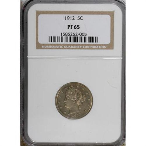 <B>1912 5C PR65 NGC.</B></I> NGC Census: (124/103). PCGS Population (92/45). Mintage: 2,145. Numismedia Wsl. Price for NGC/PCGS coin in PR65: $484. (#3910)<BR><BR><B>Coin Engraver:</B> Charles E. Barber<BR><BR><b>Shipping:</b> Coins & Currency (<a target="_blank" href="http://www.heritageauctions.com/common/shipping.php">view shipping information</a>)