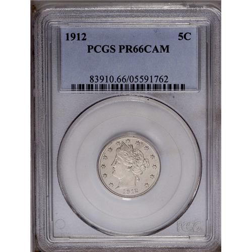 <B>1912<5C> PR66 Cameo PCGS.</B></I> Essentially untoned with sparkling mirrors and a significant degree of contrast for this final year proof issue. Population: 12 in 66 Cameo, 4 finer (4/06).