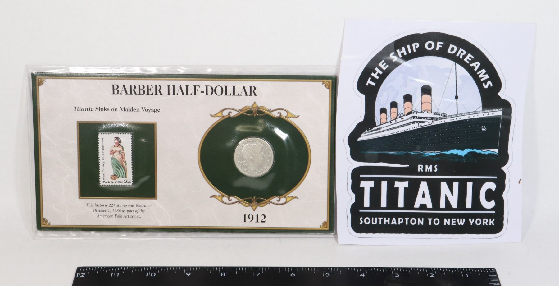 DISPLAYED ON A PANEL WITH FASCINATING INFORMATION  ABOUT A MAJOR EVENT THAT TOOK PLACE IN THE COINS  YEAR OF ISSUE AS WELL AS A MINT CONDITION US  POSTAGE STAMP RELATING TO THE EVENT. COMES WITH  LARGE BUMPER STICKER