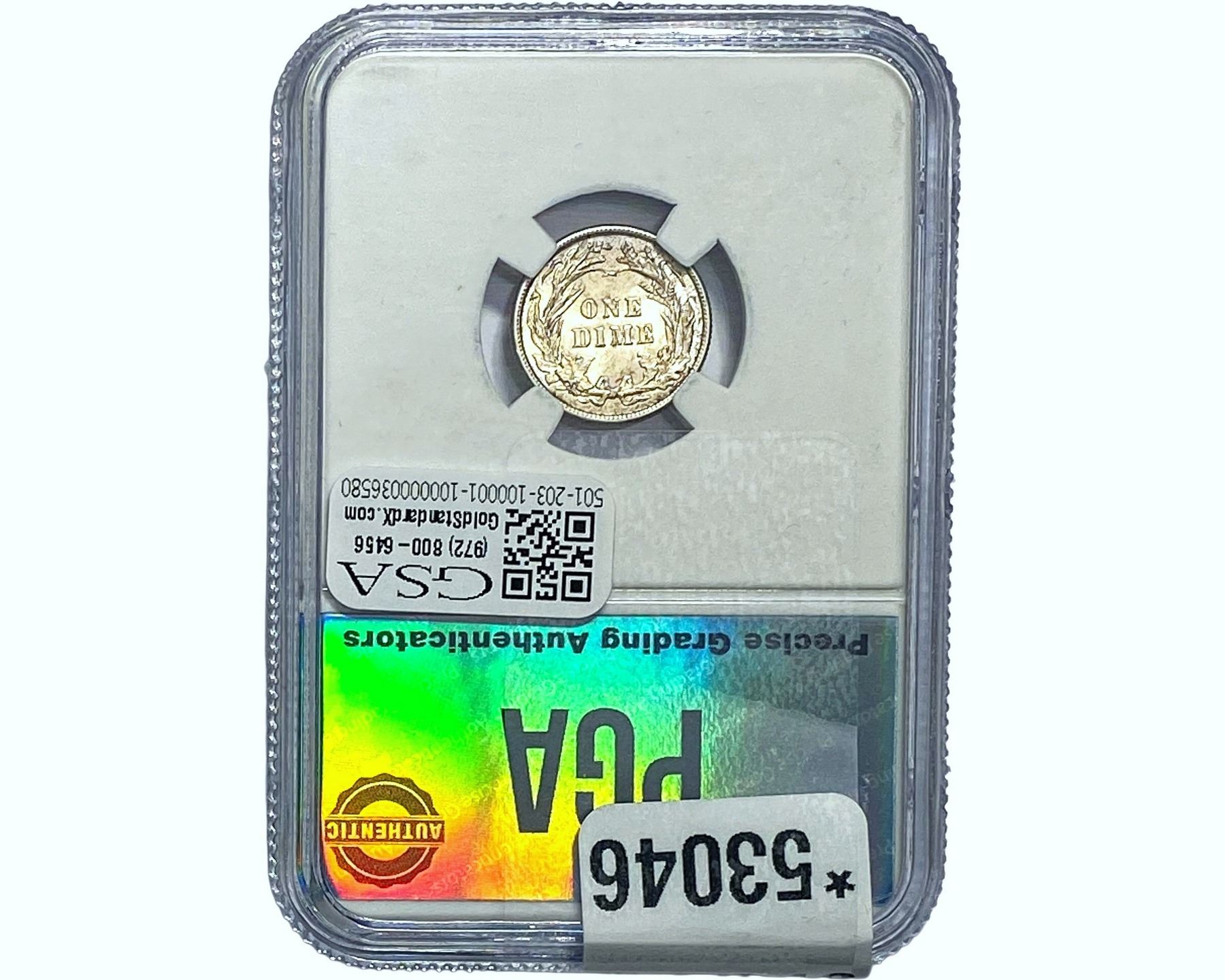 l. All non-certified coins and currency are guaranteed genuine, but are not guaranteed as to grade, since grading is a matter of opinion, an art and not a science, and therefore the description rendered by GSA or any third-party grading service may not agree with the opinion of others (including trained experts), and the same expert may not grade the same item with the same grade at two different times. GSA may, but is not obligated to, express an opinion as to non-certified numismatic items, in GSA’s opinion, or by its employees’ experience and the current interpretation of the American Numismatic Association’s standards as of the date the catalog was prepared. There is no guarantee or warranty expressed or implied that the grading opinions utilized by GSA, if any, will meet the standards of any grading service at any time in the future.