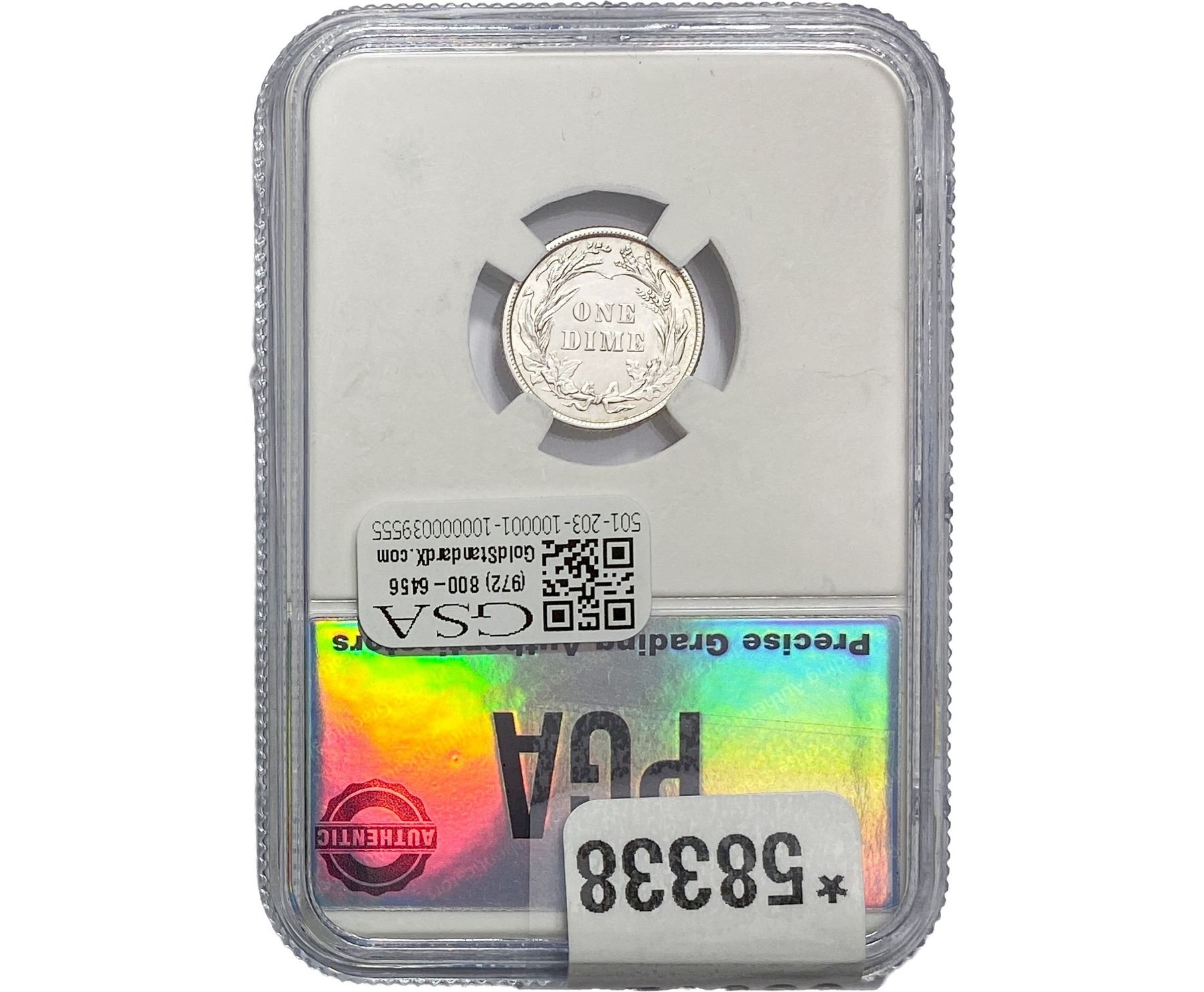 COINS AND CURRENCY LISTED IN GSA’S CATALOG AS GRADED AND ENCAPSULATED BY PCGS, NGC, ANACS, ICG, PCGS CURRENCY, PMG, PCGS BANKNOTE GRADING, CMC OR ANY OTHER THIRD-PARTY GRADING SERVICE ARE LIKEWISE SOLD “AS-IS” EXCEPT AS EXPRESSLY SET FORTH HEREIN. ALL THIRD-PARTY GRADING SERVICE GUARANTEES, INCLUDING AUTHENTICITY, ARE THE SOLE RESPONSIBILITY OF THE THIRD-PARTY GRADING SERVICE AND NOT WARRANTIES OR GUARANTEES OF GSA. BIDDERS SHOULD CONTACT THESE THIRD-PARTY GRADING SERVICES DIRECTLY WITH RESPECT TO ANY CLAIMS OR QUESTIONS THEY MAY HAVE CONCERNING THEIR GUARANTEES AND WARRANTIES. BIDDERS ACKNOWLEDGE AND AGREE THAT AUCTIONEER IS NOT BOUND BY OR LIABLE FOR ANY OPINION OR CERTIFICATION BY ANY THIRD-PARTY GRADING SERVICE. REMOVAL OF A PRODUCT FROM ITS PROTECTIVE CASING OR HOLDER OR ALTERATION OF ANY COIN HOLDER WAIVES ALL RIGHTS CONCERNING THE PRODUCT CONTAINED THEREIN.