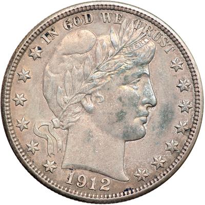 1912 Barber Half Dollar. AU-53. Nicely toned.