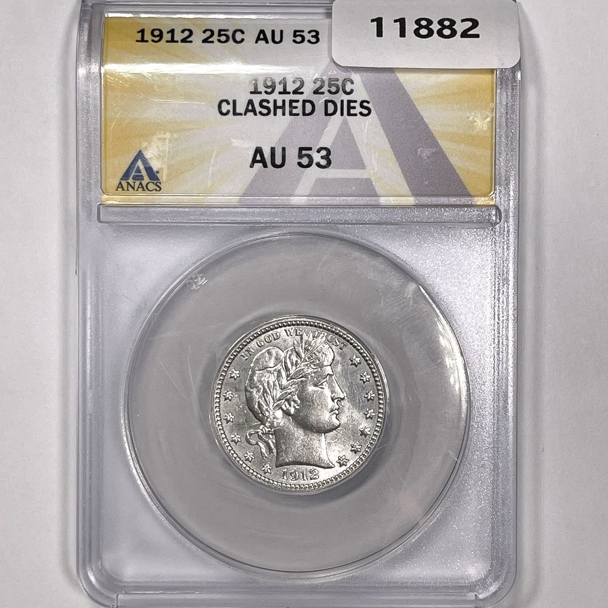 1912 Barber Quarter ANACS-AU53 Clashed Dies