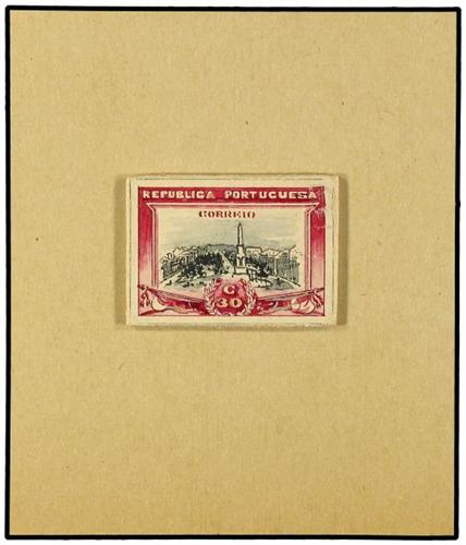 (1912 CA.) PROYECTO realizado a lápiz y acuarela de un sello de 30 cts. no adoptado. EXCEPCIONAL.