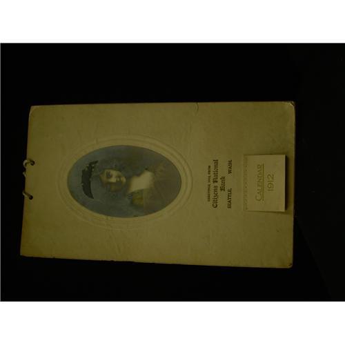 1912 CALENDAR FEATURING photo of very pretty young girl. Calendar is marked "Greetings , 1912, from Citizens National Bank Seattle Wash." All pages are intact. There is some soiling commessurate with the age.