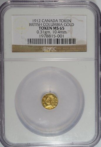 1912 CANADA TOKEN BRITISH COLUMBIA GOLD NGC MS65 VERY RARE, OTHERS LIST AT $1644