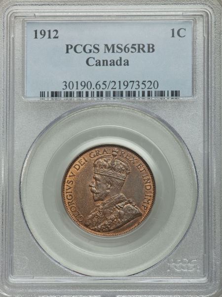 1912 Canada George V - 1-Cent - PCGS MS-65 - Value: $630.00
