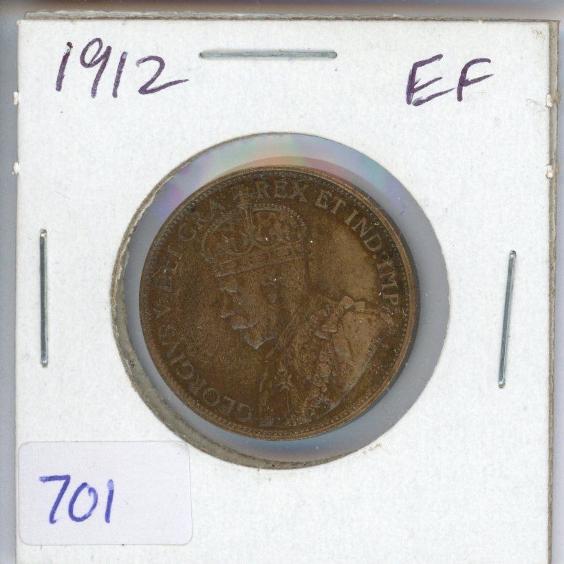 1912 Canadian Large Cent. 8 pearls. EF-40.