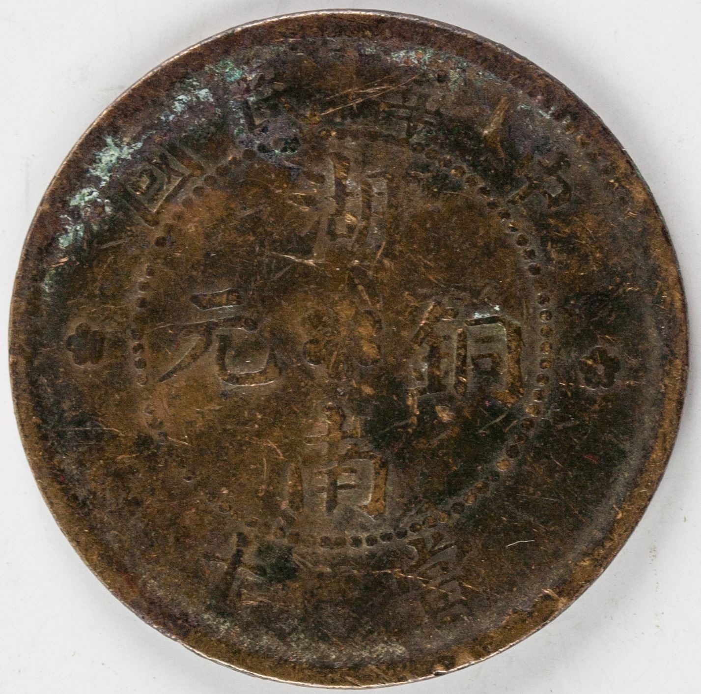 1912 China Republic 10 Cash copper coin; Hu Nan mint; obverse lettering Zhong Hua Ming Guo, Hu Nan Tong Yuan, Dang Shi; reverse engraved Iron Blood 18 Stars, lettering HU_NAN, TEN CASH; Y-399; D: 28 mm, T: 1.5 mm, 7.116 grams;similar sold in Stack's & Bowers for $1,195 in 2012; (similar sold in Stack's & Bowers for $1,195 in 2012;)