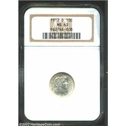 1912-D 10C MS63 NGC. The sharply impressed features are suitably lustrous for the grade with relativ