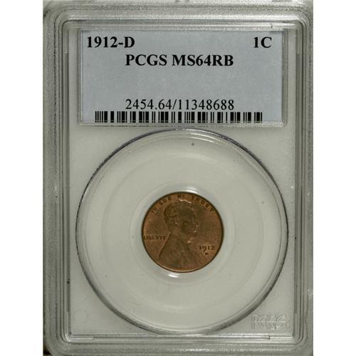 <B>1912-D 1C MS64 Red and Brown PCGS.</B></I> PCGS Population (89/10). NGC Census: (61/27). Mintage: 10,411,000. Numismedia Wsl. Price: $300. (#2454)<BR><BR><b>Shipping:</b> Coins & Currency (<a target="_blank" href="http://www.heritageauctions.com/common/shipping.php">view shipping information</a>)