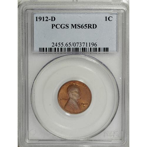 <B>1912-D 1C MS65 Red PCGS.</B></I> The obverse has a two-toned appearance, with glowing orange-red fields and glints of hazel-gray on the central highpoints. The reverse is a consistent orange-red. Visible carbon is absent, and the strike is pleasing, although a shade light on the first few letters in PLURIBUS. Population: 89 in 65, 6 finer (12/06).<BR><BR><b>Shipping:</b> Coin/Currency (<a target="_blank" href="http://www.heritageauctions.com/common/shipping.php">view shipping information</a>)