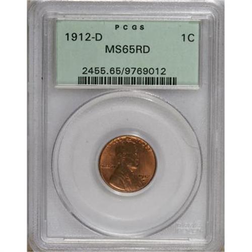 <B>1912-D 1C MS65 Red PCGS.</B></I> This second-year Denver Mint cent is satiny and decisively struck with luminous brick-red fields. The portrait highpoints have a whisper of ruby-red. Essentially void of contact, and only trivial carbon emerges with the aid of a loupe. Encased in a green label holder.<BR><BR><b>Shipping:</b> Coins & Currency (<a target="_blank" href="http://www.heritageauctions.com/common/shipping.php">view shipping information</a>)