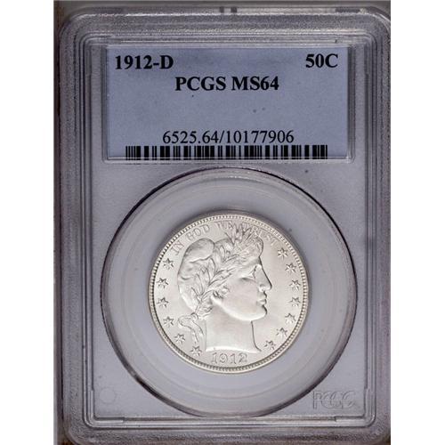 <B>1912-D<50C> MS64 PCGS.</B></I> This essentially brilliant near-Gem is vigorously lustrous and has an especially clean reverse. Stars 11 and 12 are slightly soft, as is the right shield corner.