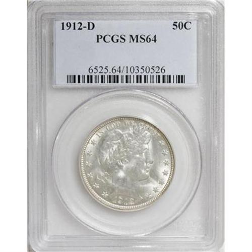 <B>1912-D 50C MS64 PCGS.</B></I> Soft, swirling luster is the prime attribute of this subtle silver-gray Choice coin. Well-defined with only a handful of wispy flaws, though these combine to preclude Gem status.<BR><BR><B>Coin Engraver:</B> Charles E. Barber<BR><BR><b>Shipping:</b> Coins & Currency (<a target="_blank" href="http://www.heritageauctions.com/common/shipping.php">view shipping information</a>)