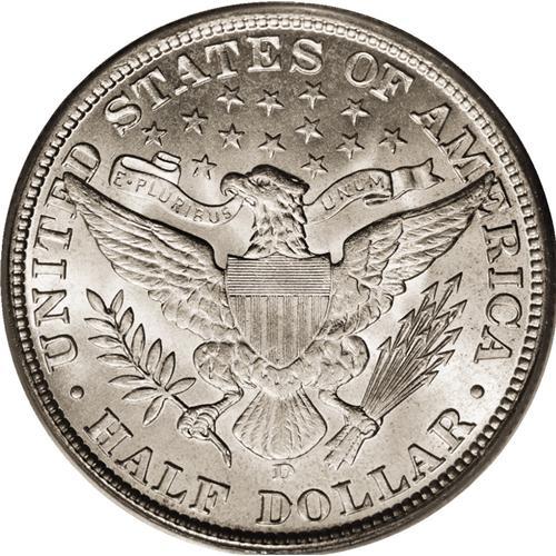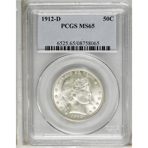 <B>1912-D<50C> MS65 PCGS.</B></I> Light tan toning denies full brilliance, but this lustrous Gem has an essentially pristine reverse, and the obverse is also unusually void of marks. The fletchings and the right (facing) wing joint have slight softness, but less than usually seen on business strikes of the type. Population: 44 in 65, 11 finer (8/06).