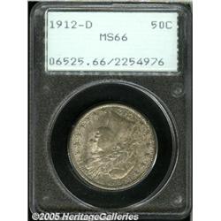 <B>1912-D 50C MS66 PCGS.</B></I> The 1912-D is one of the better produced Barber halves and it is also one of the more available of the late dates. This is a sharply struck example that displays the usual nice luster this issue is known for. Additionally, there are no noticeable abrasions on either side. Originally toned with speckled russet patina over both obverse and reverse. Population: 10 in 66, 0 finer (2/05).