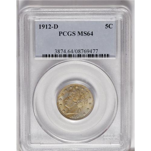 <B>1912-D<5C> MS64 PCGS.</B></I> The only Denver issue of the Liberty Head nickel series. Pleasing amber patina, and a few random contact marks that prevent a higher grade.