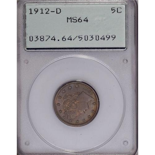 <B>1912-D<5C> MS64 PCGS.</B></I> The satin-like surfaces are covered in deep hues of pinkish-golden and blue toning. A popular issue as it is the most affordable mintmarked Liberty nickel. <BR><BR><B>Important notice:</B> Heritage usually auctions material at the rate of 200-250 lots per hour. On some occasions eBay Live bid software or the Internet may not be able to keep up with the pace of the auction. We recommend placing a realistic absentee bid now as insurance to avoid disappointment. Occasionally the auctioneer may eliminate or reject an eBay Live bid, and the auctioneer may also reopen a lot after the close of the eBay live bidding (usually because we missed an audience bid), and may reject your bid even if it shows you as the winning bidder. By bidding via eBay Live, you agree that Heritage may award the lot to another bidder at its sole discretion under the circumstances described above or any other reasonable circumstances. Since eBay bids are not shown to us until we open the lot on the floor, we treat those bids just like floor bids. In most cases the floor responds before the eBay bid is presented to us, due to Internet lag time, so for consistency we have made it a policy that floor bids are always considered first over tie eBay live bids. Also please note that all Heritage lots purchased through eBay Live carry a 20% Buyer's Premium. Please make sure you read the Terms and Conditions before you bid. This lot is being auctioned in conjunction with a live floor auction by Heritage Galleries & Auctioneers. All final auction and invoice information will be supplied by Heritage Galleries & Auctioneers, and all other information should be considered preliminary. Lot:966 <BR><BR><B>Winning Notification and Billing:</B> After the FINAL session in this auction is complete, Heritage will send e-mail and snail mail invoices. This process normally takes several days. All final auction and invoice information will be supplied by Heritage Galleries & Auctioneers, and all other information should be considered preliminary. <BR><BR>This auction will be conducted on a live auction floor and over the Internet through eBay Live. If you choose to place an absentee bid, please take a moment to <font color='#0000ff'><u><a href='http://pages.ebay.com/liveauctions/help/before/laabsentee.html'>learn how eBay Live absentee bidding works</a></u></font><font color='#000000'>