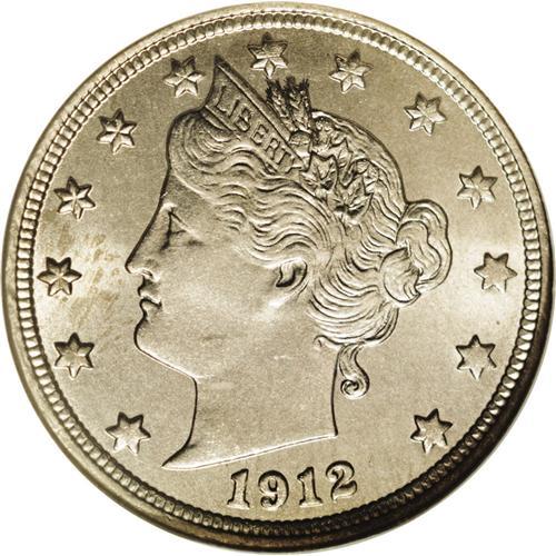<B>1912-D<5C> MS66 NGC.</B></I> Virtually untoned with a soft, frosted sheen that is most attractive and nearly peerless surfaces. Just a few speckles of olive-gold color are seen at the left side of the obverse. A few of the peripheral details are a bit lacking in strike, but overall the definition is more than expected on this lone D-mint "V" Nickel. Census: 23 in 66, 3 finer (4/06).