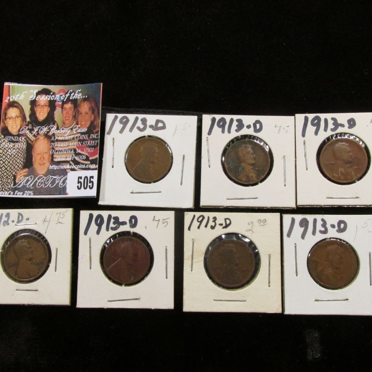 1912 D & (6) 1913 D Lincoln Cents, various grades, all semi-key date.