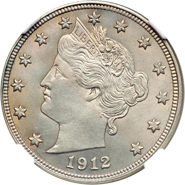 1912-D Liberty Nickel. NGC graded MS-65. A very choice example with lovely light natural toning, the surfaces smooth and clearly into the Gem quality class. Denver and San Francisco for the first time struck five-cent coins in 1912. Due to the change in design to the Buffalo Nickel the next year, 1912 would prove to be the only Denver branch mint Liberty nickel issued. Pop 92; 22 in 66; 3 in 67.