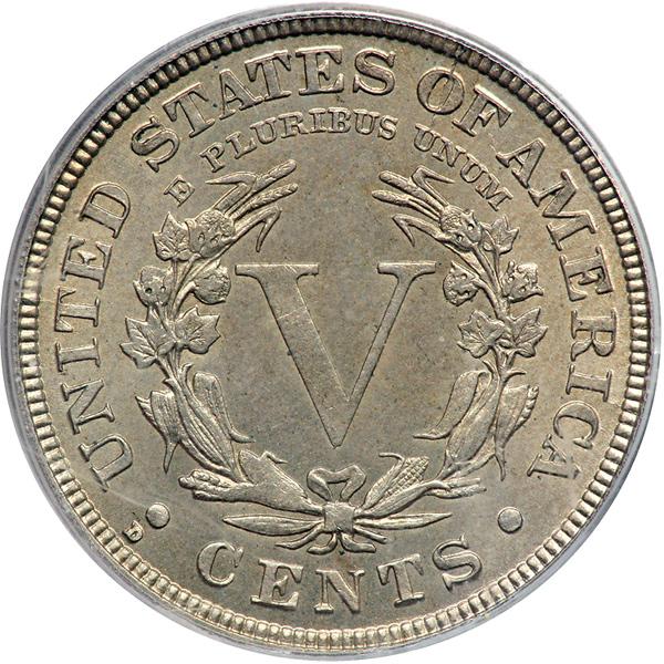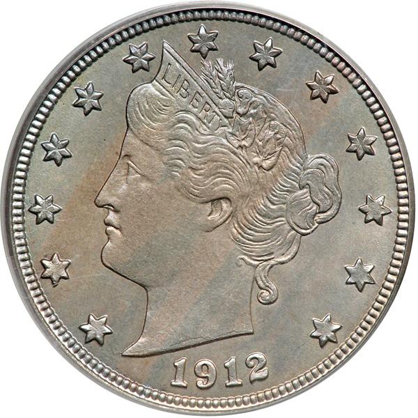 1912-D Liberty Nickel. PCGS graded MS-63 PQ. Nicely toned, original clean, spot-free surfaces, and most of the finer detail present (though some stars are flat, as often occurs). First year that Denver Mint struck this denomination. And the only such Liberty nickel to carry a "D" mintmark (PCGS # 3874) .