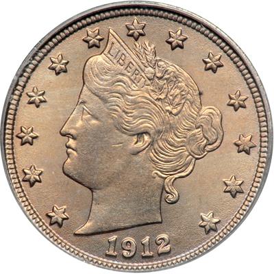 1912-D Liberty Nickel. PCGS graded MS-65. Well struck with satiny mint surfaces. Soft golden toning graces the surfaces on both sides. A gem. This is the initial Denver Mint nickel; authorization was given only in 1908 for the brnach mints to begin striking minor coins (Cents and Nickels) -- Denver issued one-cent pieces in 1911, and from there-on, with Liberty nickel production following in 1912. Pop 114; 27 finer in 66 (PCGS # 3874).