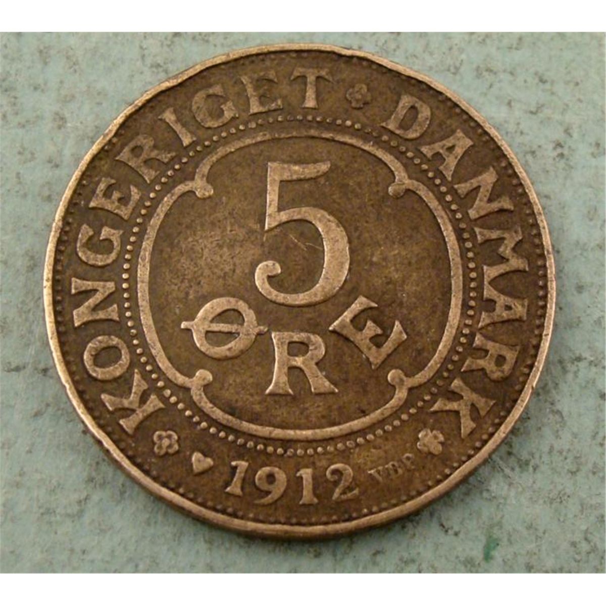 Here is a 1912 Five Ore Denmark coin, nice detail. *