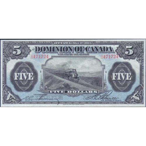 1912 Five Dollars No Seal, B Before Sheet Number, DC-21c Serial Number B471724 C, PMG Gem Uncirculated 65 Exceptional Paper Quality